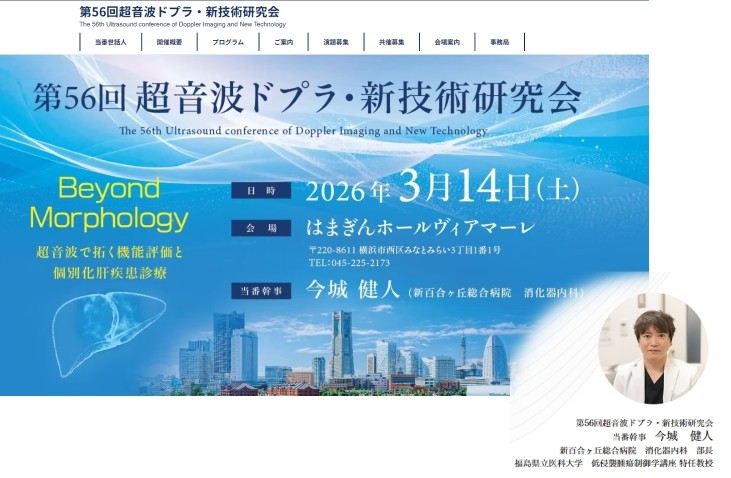 第56回超音波ドプラ・新技術研究会において、主幹を新百合ヶ丘総合病院消化器内科部長の今城健人医師が務め、当教室からも多数の医師が参加し発表を行いました。